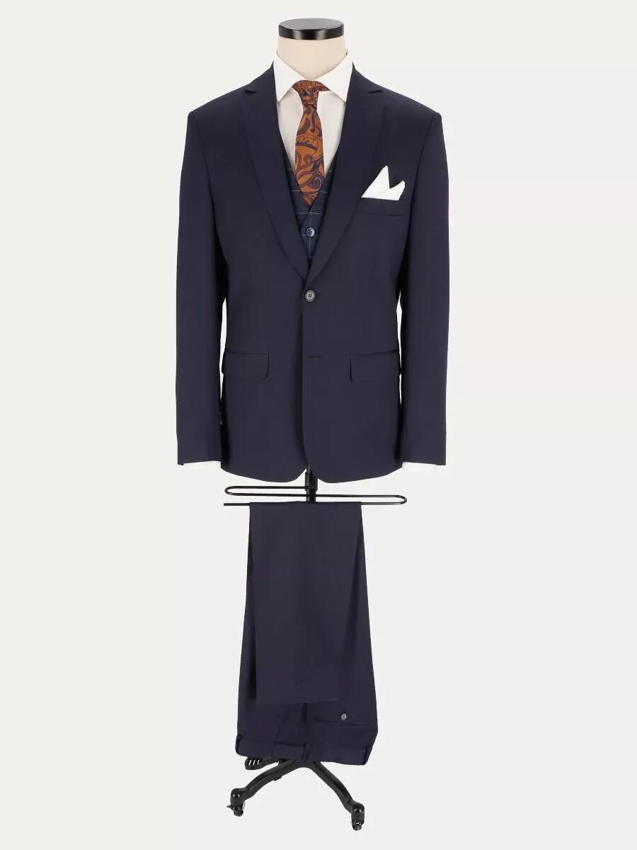 KUBENZ - Granatowy garnitur PRIME LUX NAVY SC slim - Z dodatkiem wysokiej jakości wełny - Gładki - Styl elegancki