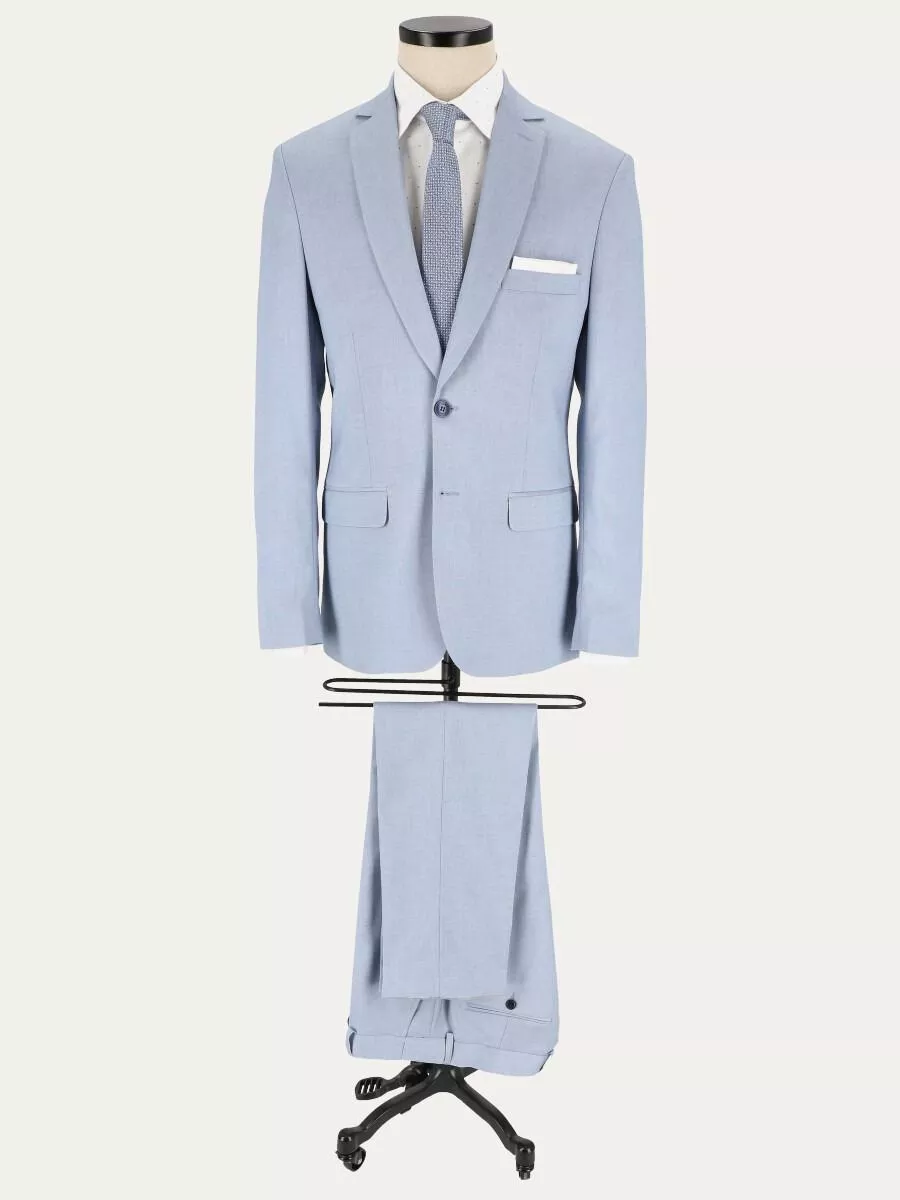 Niebieski dwuczęściowy garnitur slim PRIME FOKSAL SC z innowacyjnym elastycznym pasem